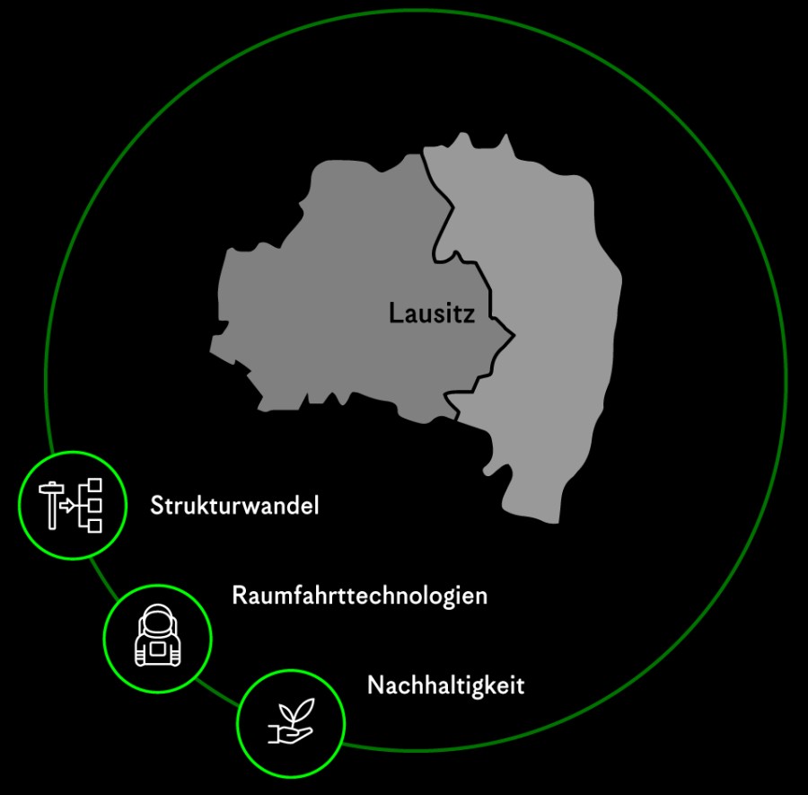 Das Lausitzer Revier ist eine Hochtechnologieregion mit umfangreicher Kompetenz in Ressourcen-, Produktions-, Energie- und Umwelttechnologien. Die vorhandenen Unternehmen und Strukturen bilden damit eine hervorragende Ausgangsbasis für Innovationen, die zu einer nachhaltigen Ressourcennutzung und sicheren Versorgung sowohl im Weltraum als auch auf der Erde beitragen.