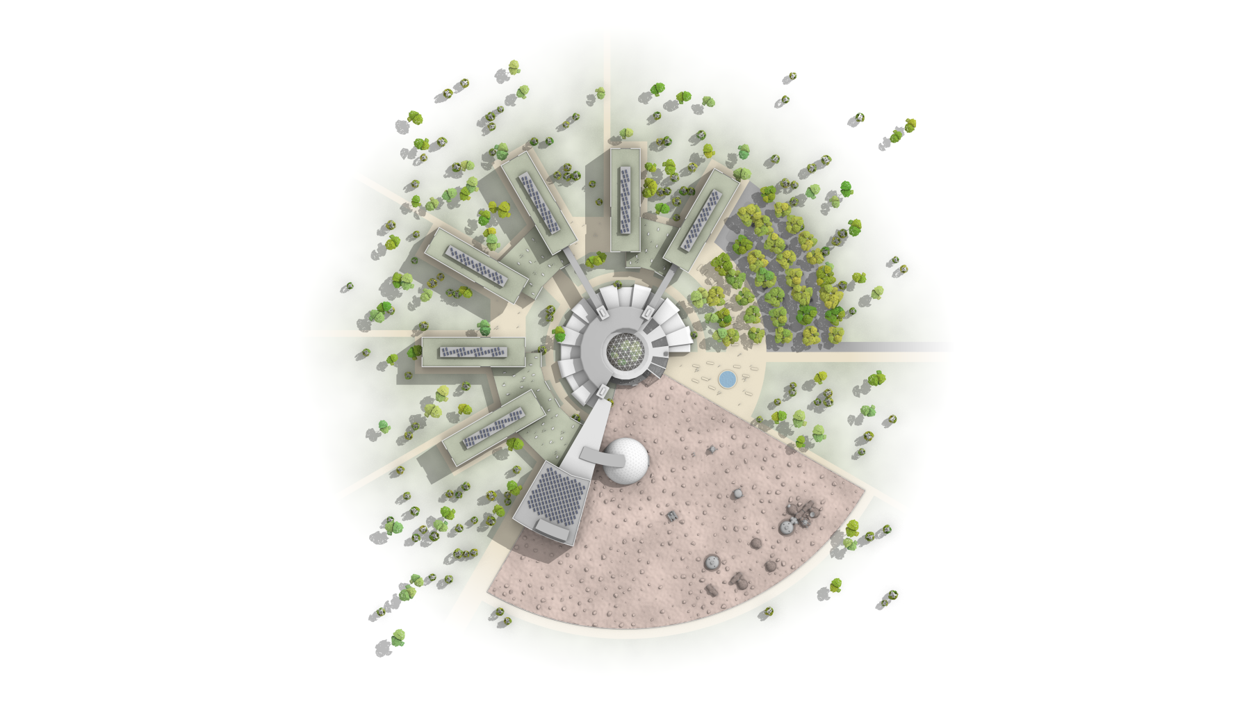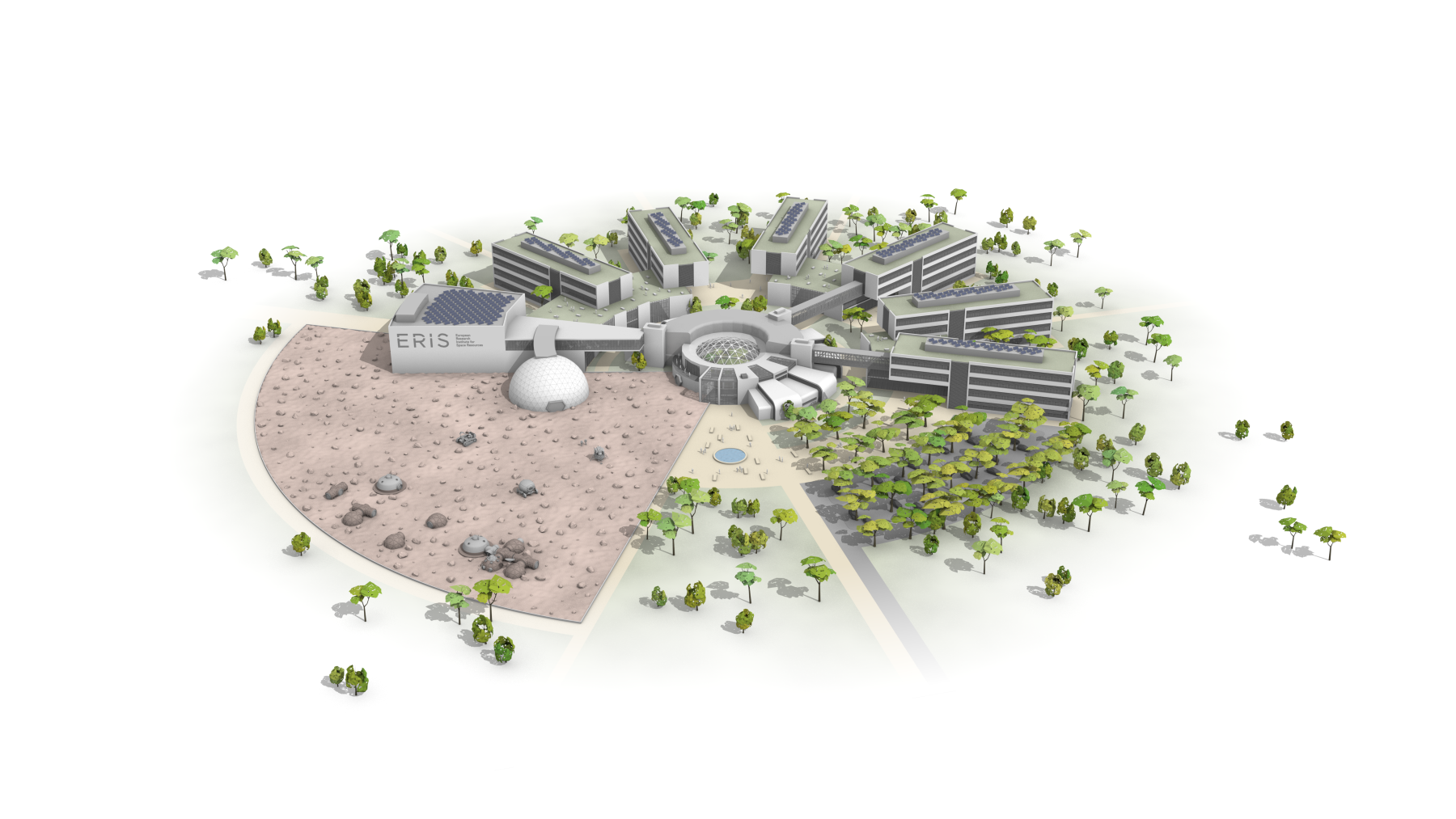 In addition to the research centre, the ERIS campus includes space for commercial start-ups and commercial settlements in the focus areas of green tech and space tech, as well as areas for residential complexes and temporary accommodation for guest scientists. This accommodation should itself also serve as a demonstrator for innovative, resource-efficient and resilient building and living concepts, and will adopt and test ideas from research in ERIS.